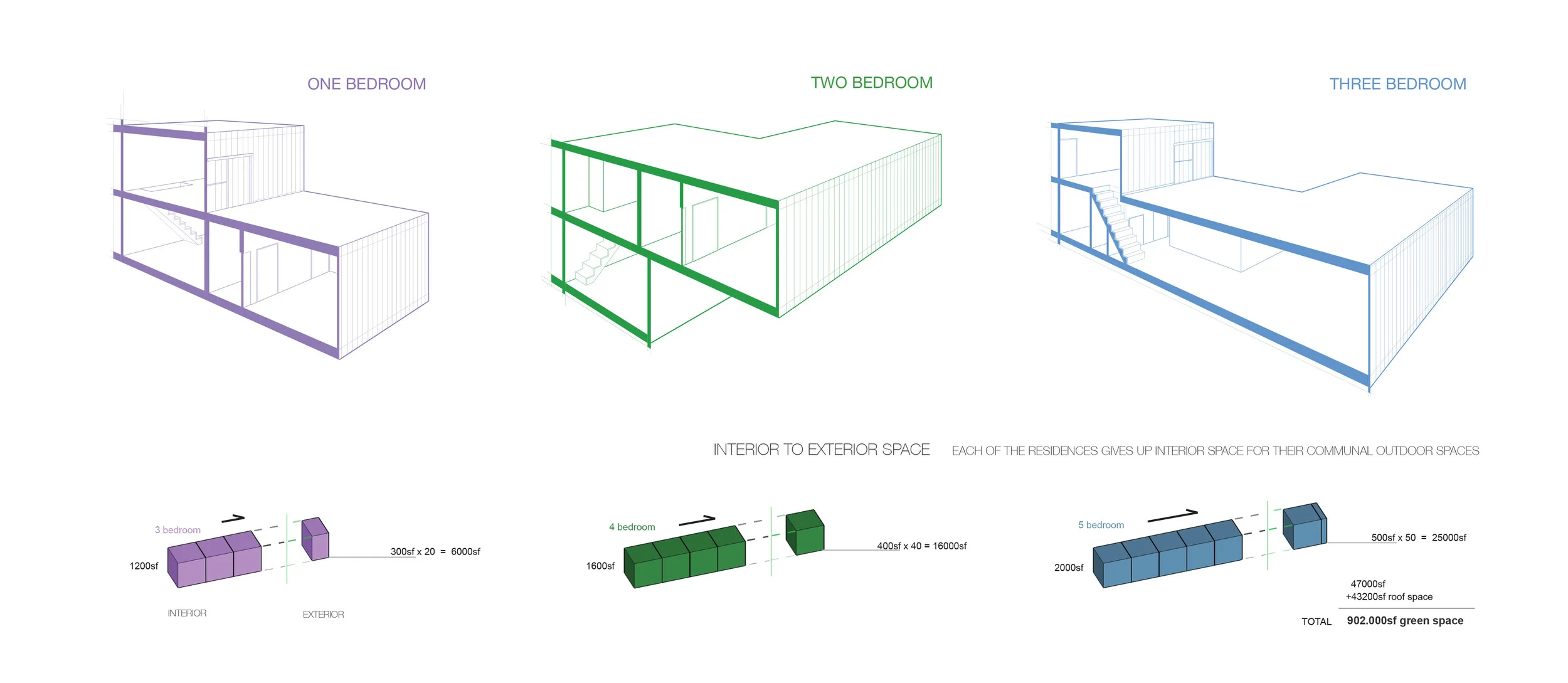 The unit plan in the residences is designed to create unique and treasured apartments which are tailored to family size and interior specificity. Because each unit is unique, residents are more content to give up square footage to a communal garden. This forms micro-communities which work together to support each other and the green-space they share.